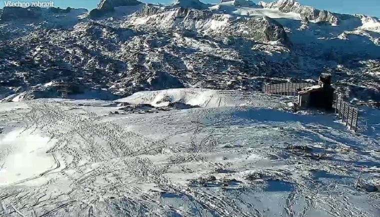 Pohled z horní stanice lanovky na Krippensteinu směrem na Dachstein. Plus síla a směr větru. Aktuálně co 10 minut.